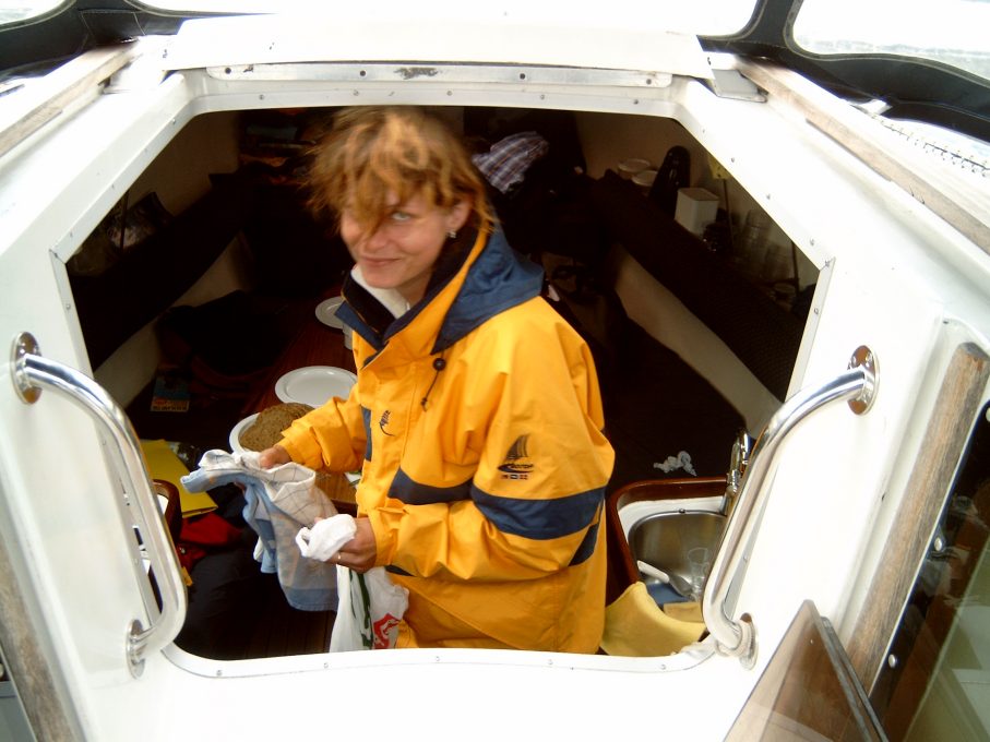 | Bevor wir zurück nach Lemmer segelten, machten wir einen Abstecher auf das Heeger Meer. Beim schönsten Segeln stellte unsere Tochter dann Wassereinbruch im Schiff fest. Ich dachte erst an ein nicht geschlossenes Ventil in der Nasszelle. Aber die war trocken. Dafür stand in unsere Achterkajüte das Wasser 20cm hoch. Woher kam das?? Anlegeversuche an einem Wasserrastplatz scheiterten wegen des Tiefgangs. Immer wieder steckten wir im Schlick fest. |