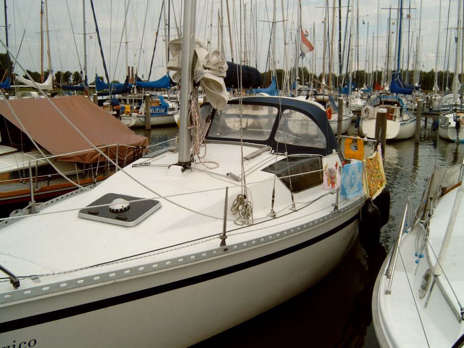 | Also beschloss ich das Schiff treiben zu lassen. Der Defekt war dann schnell festgestellt. Das Kühlsystem vom Motor war gerissen und hat beim Ablegen das Kühlwasser ins Schiff gepumt. Also unter Segel zrück nach Heeg an unseren Liegeplatz der letzten Nacht. Reparaturversuche unsererseits blieben erfolglos. Nach einem kurzen Telefonat mit dem Vercharterer kam dieser mit einem Ersatzteil und baute es ein. Er meinte, das dies alle 3 Jahre passiert und auf einen Konstruktionsfehler seitens Volvo Penta zurückzuführen sei. | |